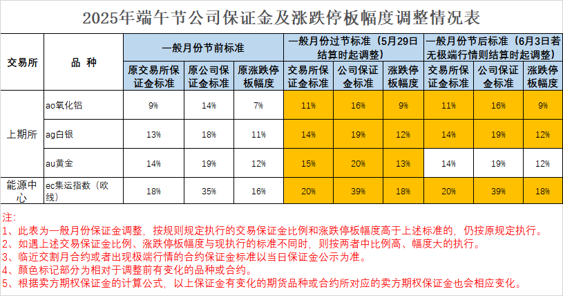 2025年端午節(jié)公司保證金及漲跌停板幅度調(diào)整情況表